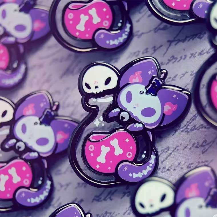 Low-Temperature Baking: Pins are baked at controlled temperatures (typically 250°C or below) to solidify the enamel without clouding. This process gives the enamel a glass-like gloss 1.